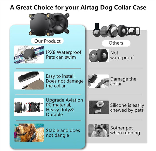 for IPX8 Waterproof Airtag Dog Collar Holder, for Durable Airtag Holder Case,Full Protective Anti-Scratch Anti-Chew Hard PC Dog&Cat Collars Mount for Airtag Case Cover-Black